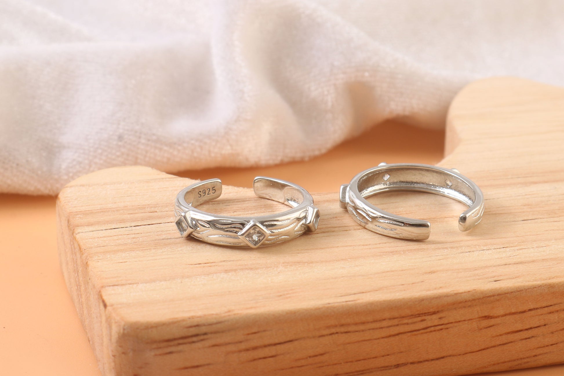 Step into effortless elegance with this handcrafted 925 sterling silver toe ring, designed with a sleek adjustable band and accented with sparkling clear cubic zirconia stones in a refined geometric setting.