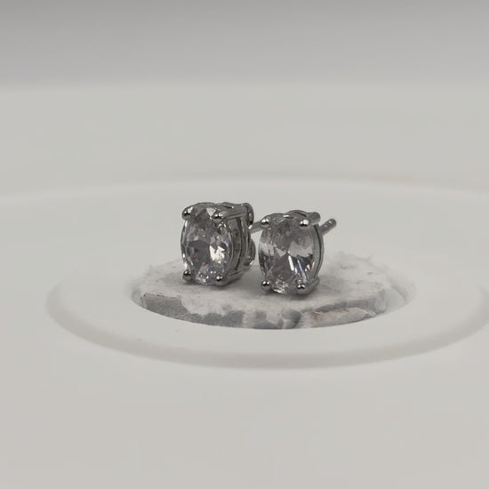 Featuring brilliant-cut oval cubic zirconia set in minimal 4-prong mounts, these studs radiate clarity and grace.