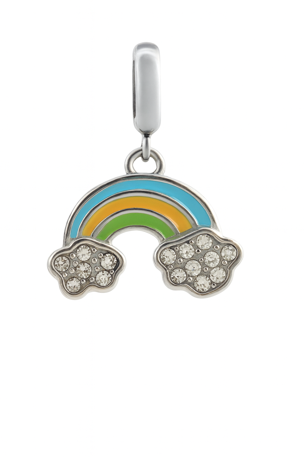 Designed with vibrant enamel in shades of blue, yellow, and green, the charm is finished with two glittering cloud details adorned with clear crystals for extra sparkle.