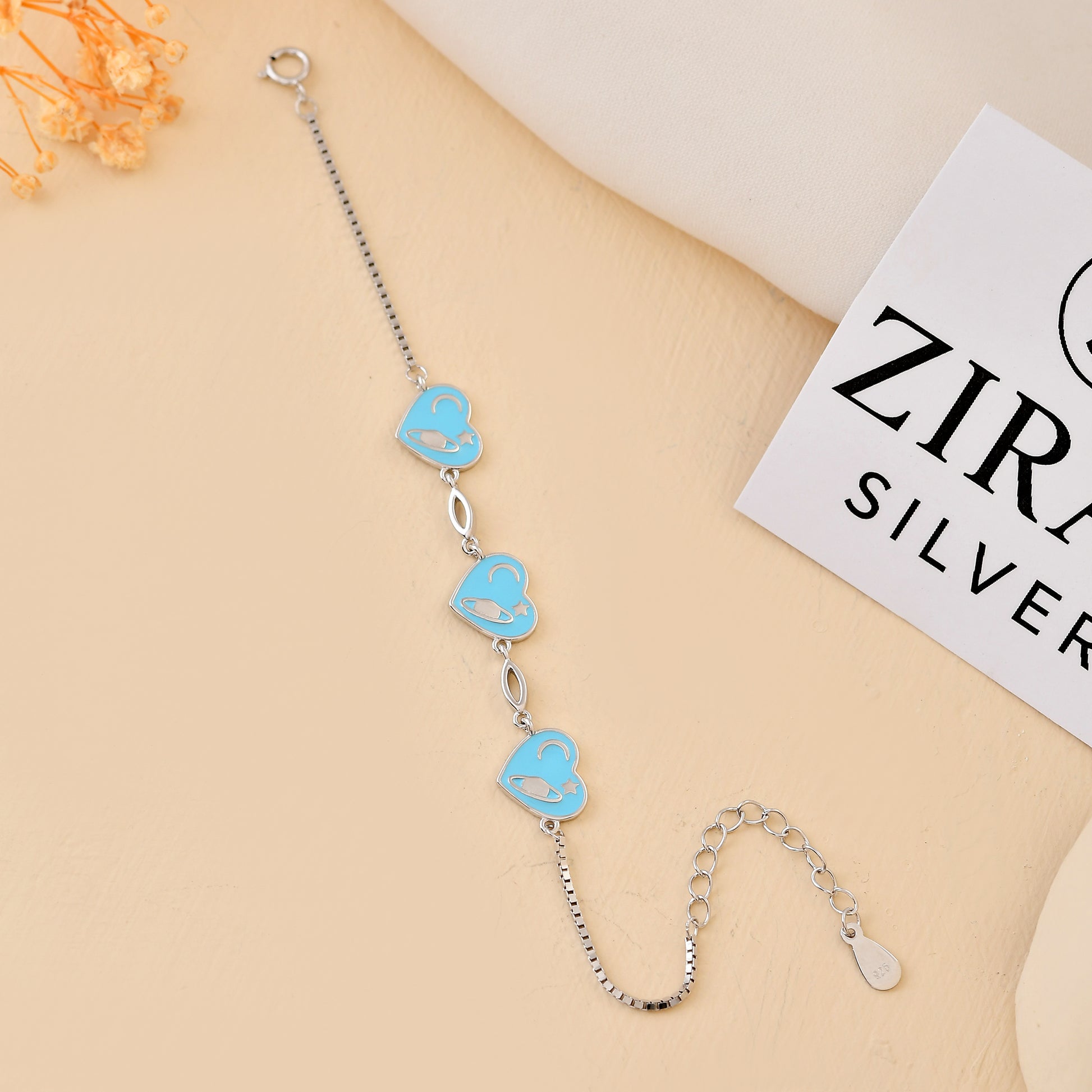 925 Sterling Silver Space Hearts Charm Bracelet – Rocket, Moon & Star Motif, Adjustable Kids Chain