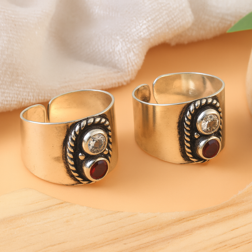 925 Sterling Silver Wide Adjustable Toe Ring with Ruby Red & Clear Cubic Zirconia – Boho Tribal Jewelry
