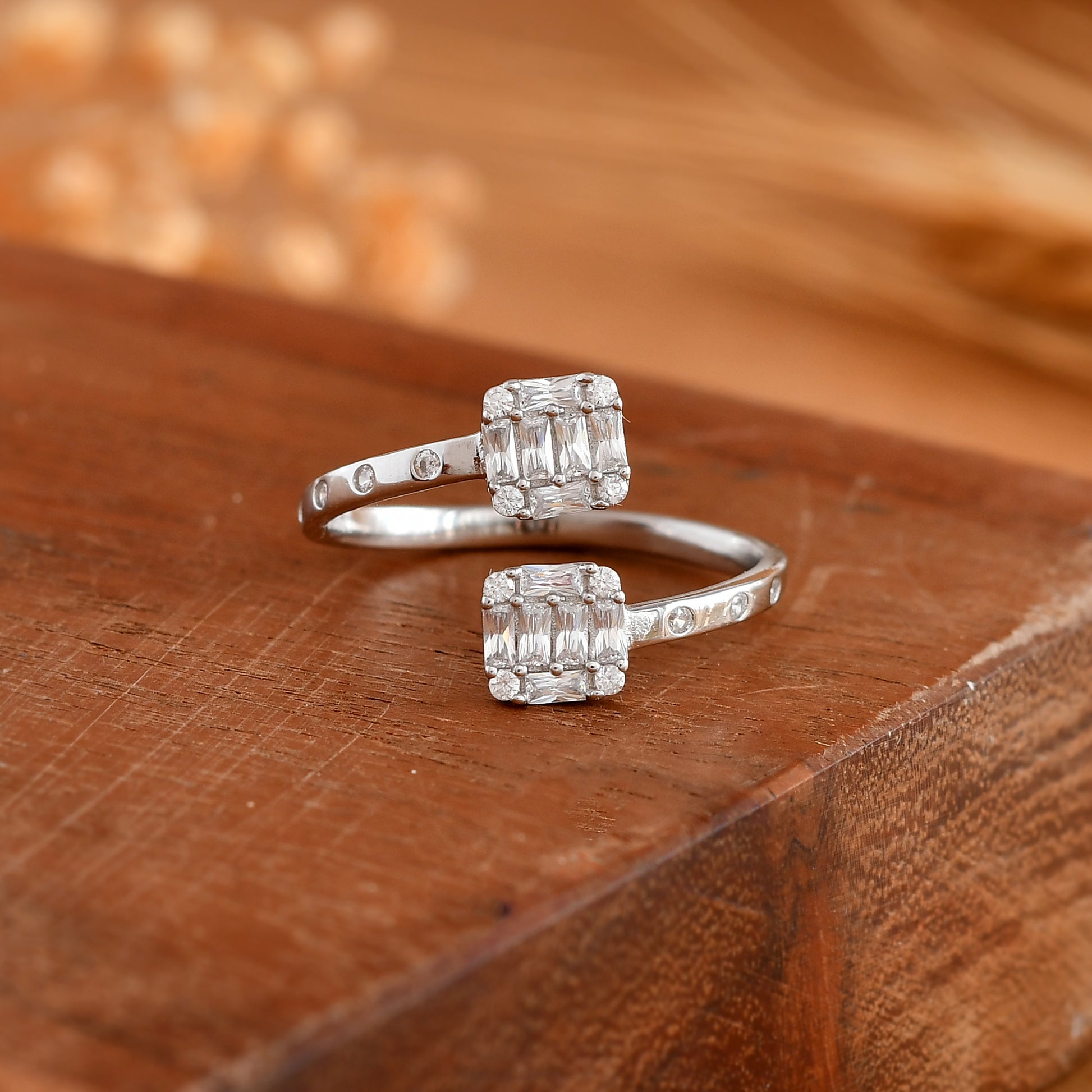 Adjustable Baguette-CZ Double-Head Sterling Silver Open Ring for Women