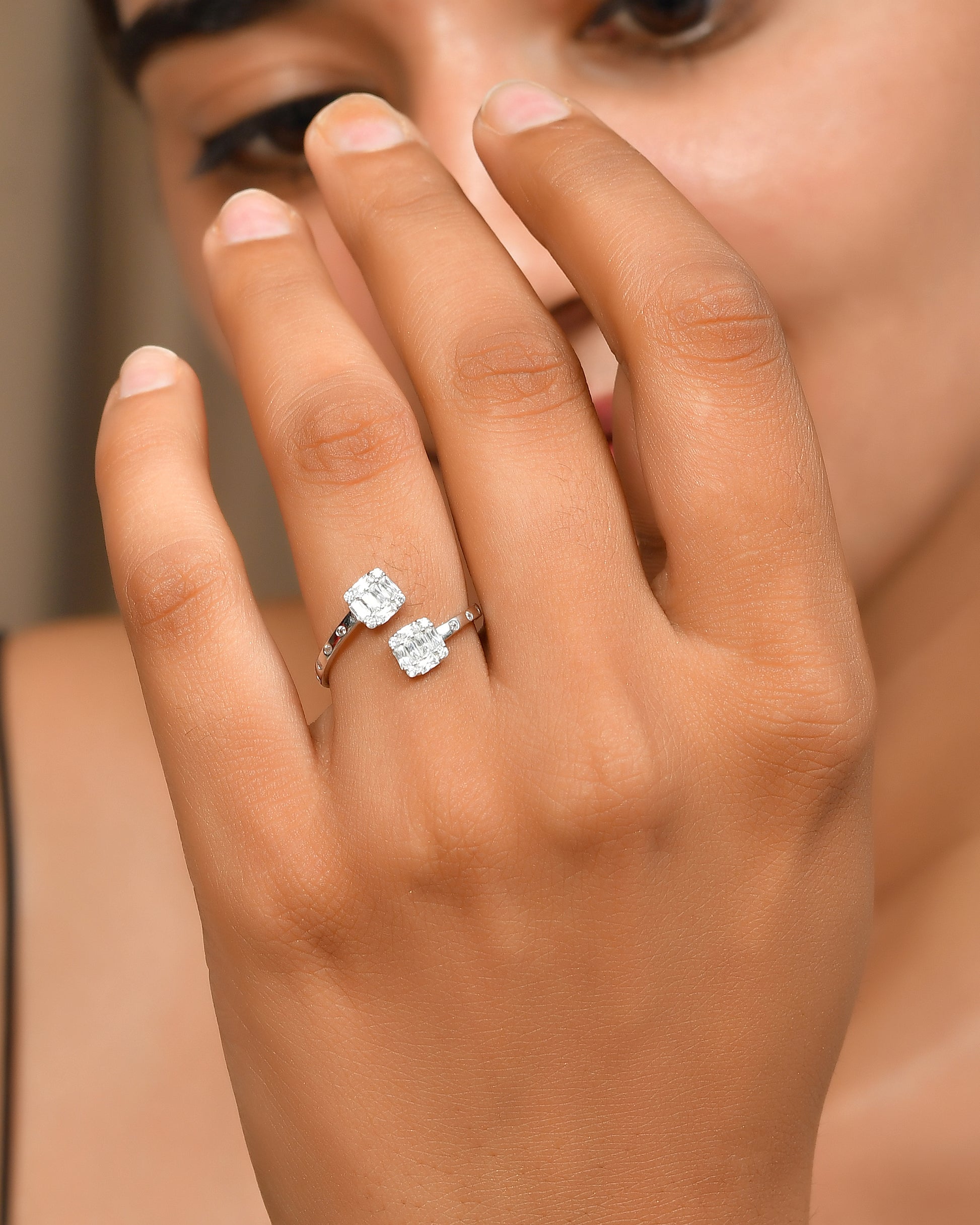 Whether worn as a modern engagement promise, right-hand cocktail ring, or daily minimalist accent, this lightweight design delivers statement sparkle with comfortable ease.