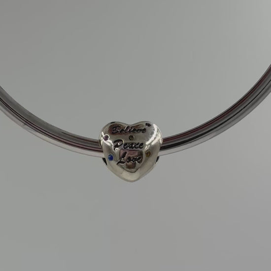 Believe Peace Love Heart Charm – Engraved Inspirational Bead with Colorful Crystals