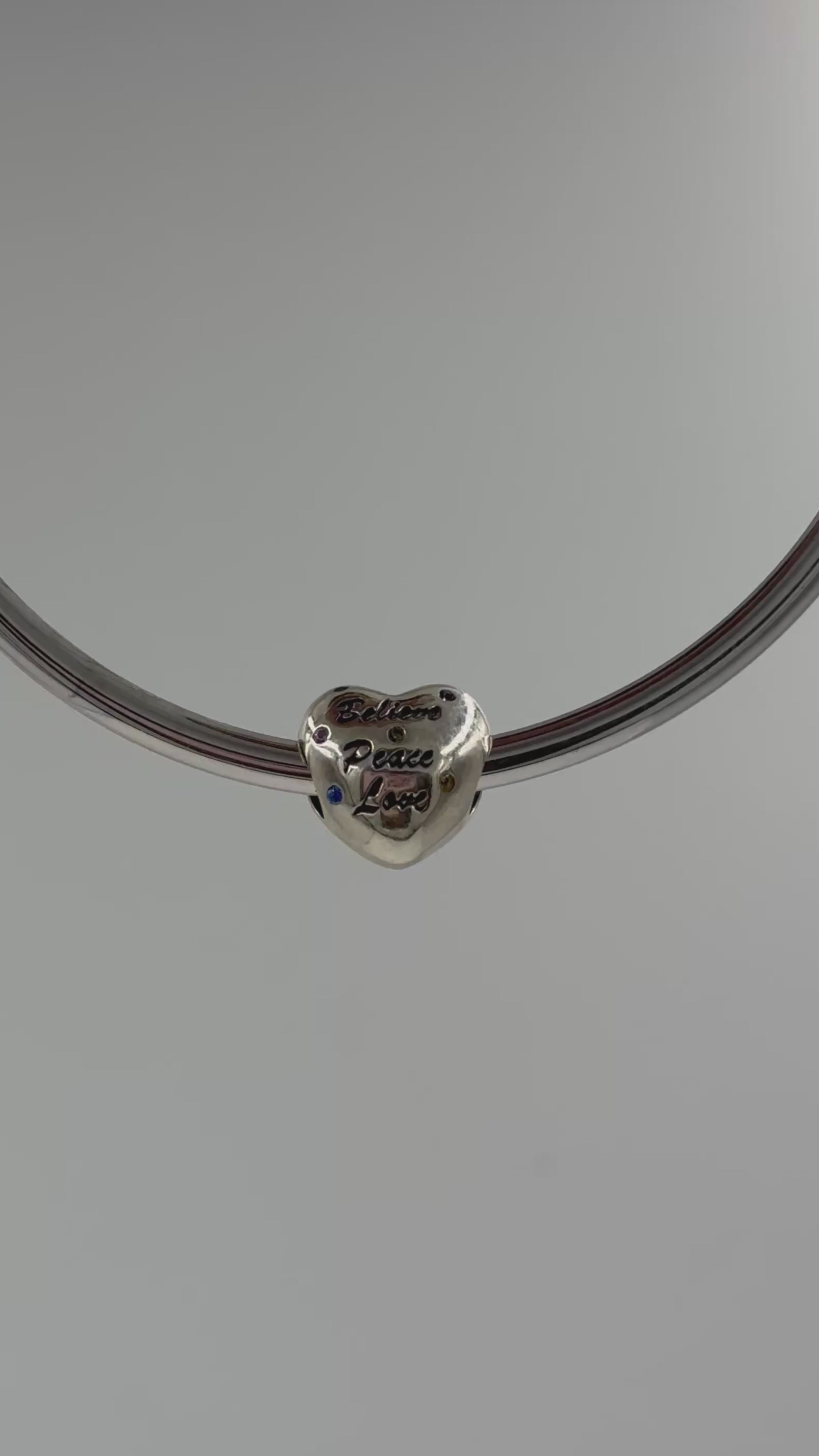 Let your bracelet speak your truth with this beautiful “Believe, Peace, Love” heart charm.