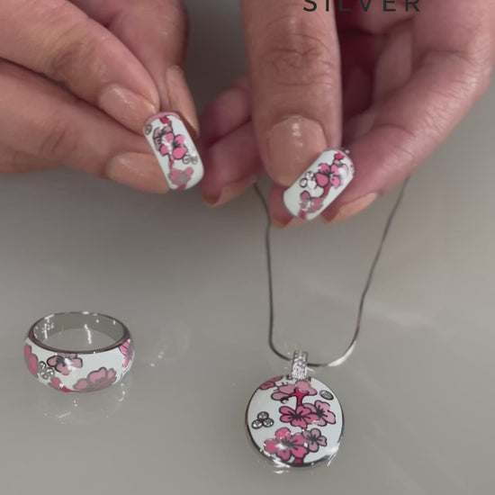 Celebrate the fleeting beauty of cherry-blossom season all year long with this enchanting enamel ring.