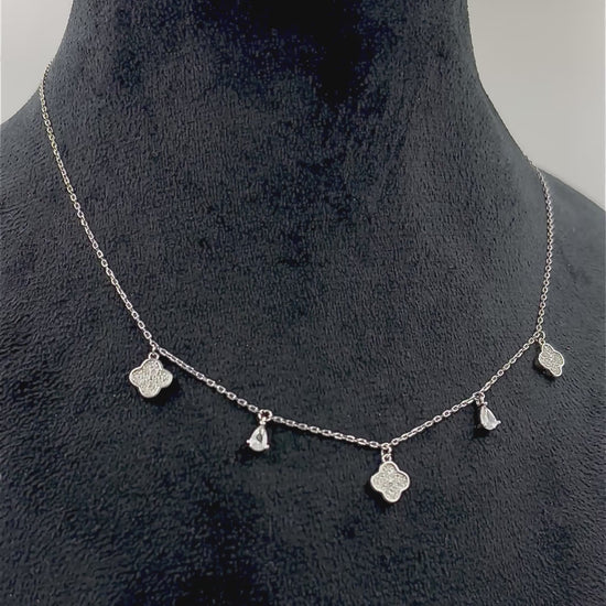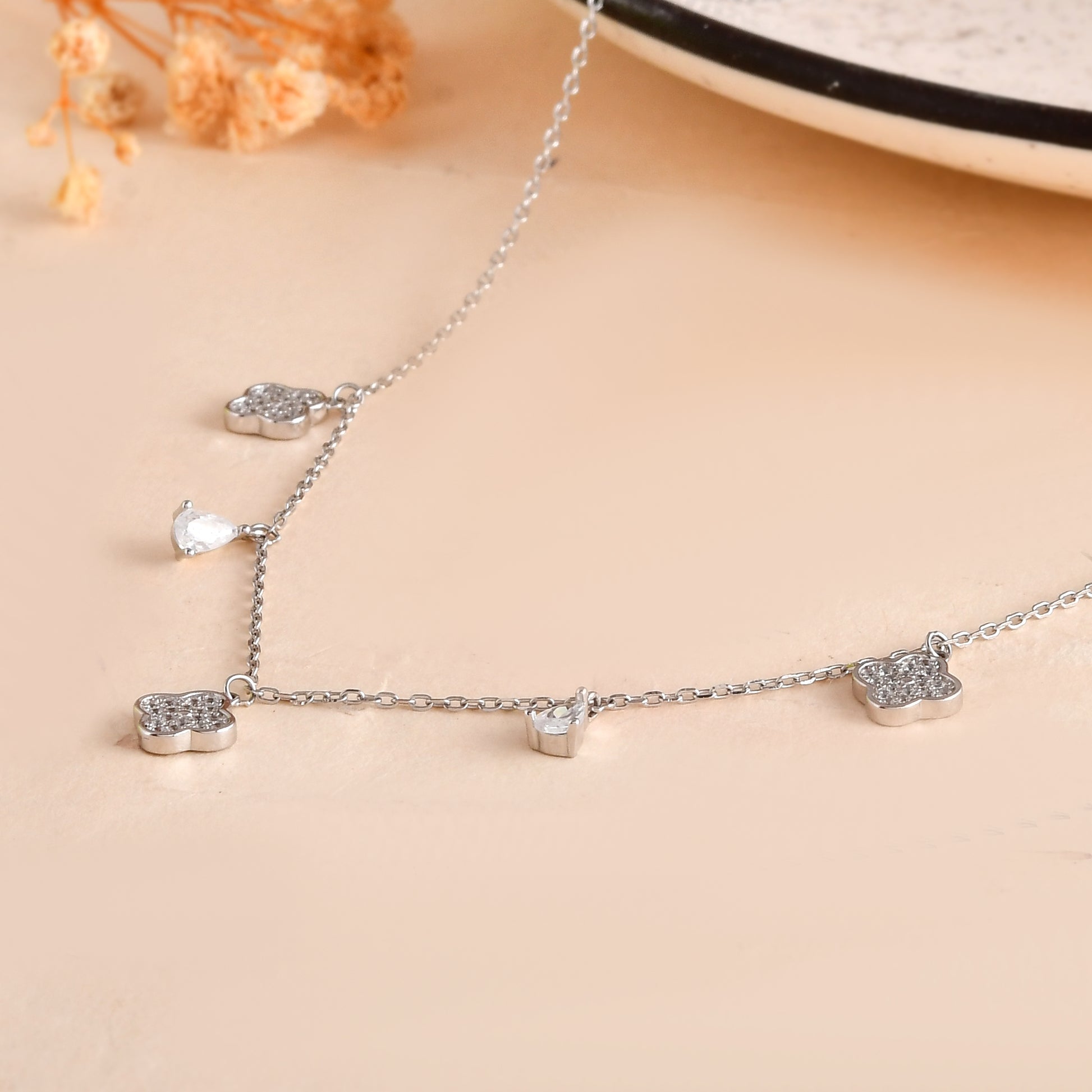 Clover & Teardrop CZ Charm Necklace – Dainty Sterling Silver Choker