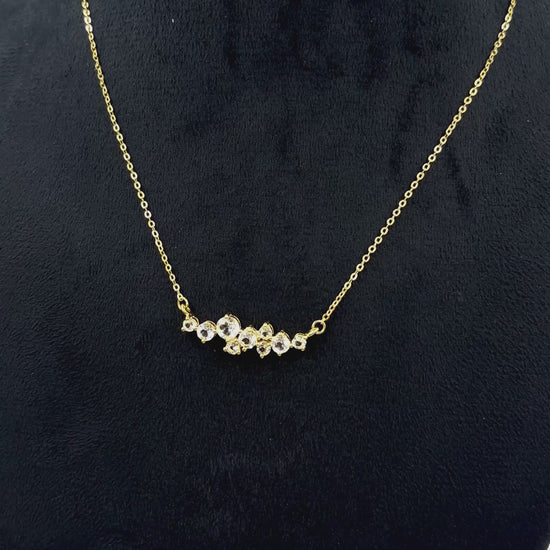 A celestial-inspired treasure featuring a graceful arc of clustered crystals that capture and reflect light with remarkable brilliance.