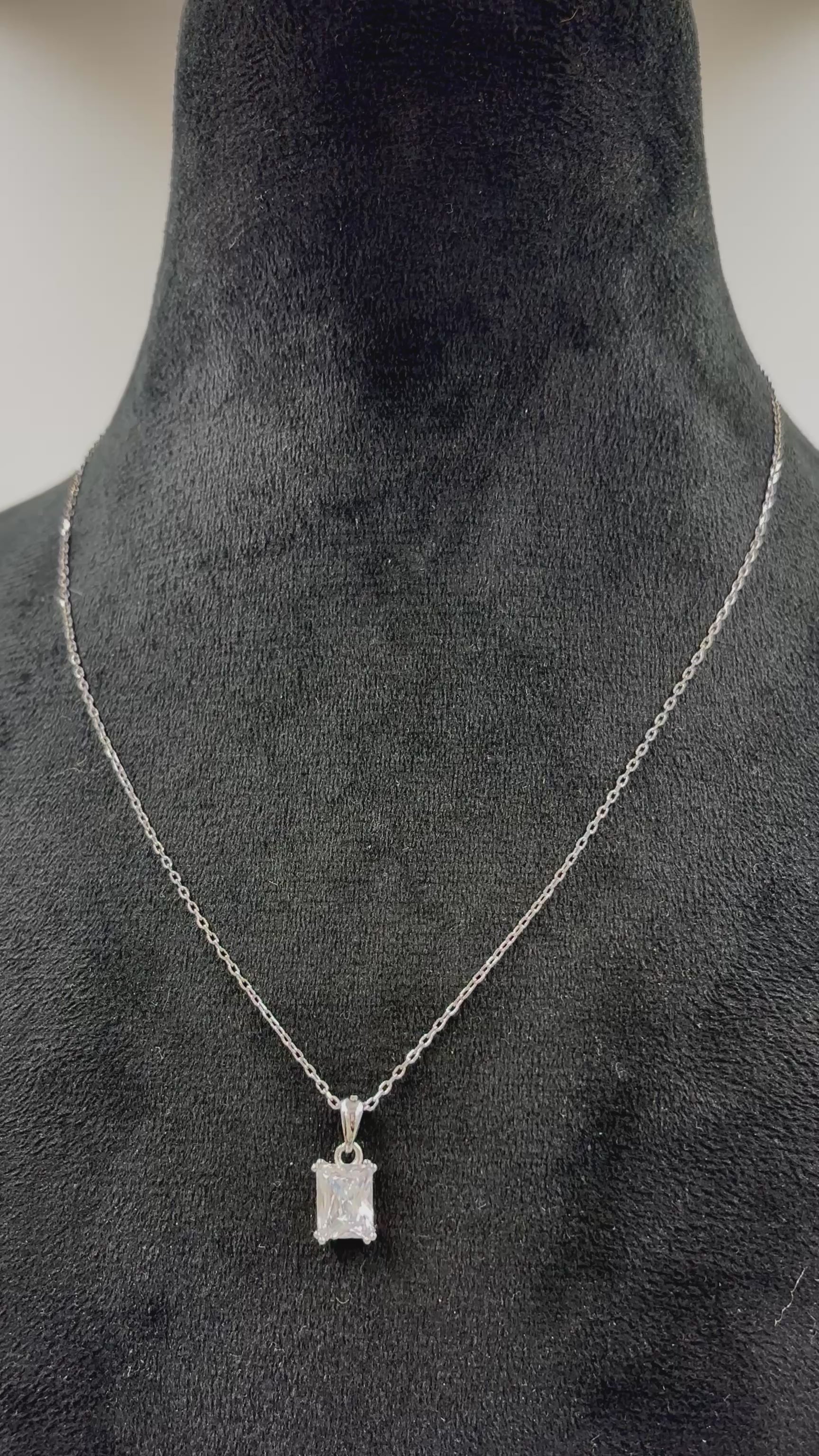 Emerald-Cut Clear CZ Solitaire Pendant in Sterling Silver – Minimalist Necklace