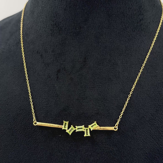 Gold-Plated Lemon Quartz Bar Pendant Necklace – Modern Gemstone Minimalist Jewelry