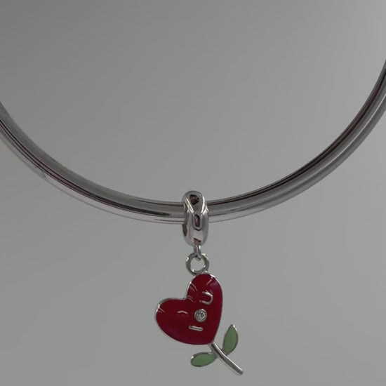 Fall in love with this enchanting Heart Flower Charm, designed as a blooming red heart on a silver stem.