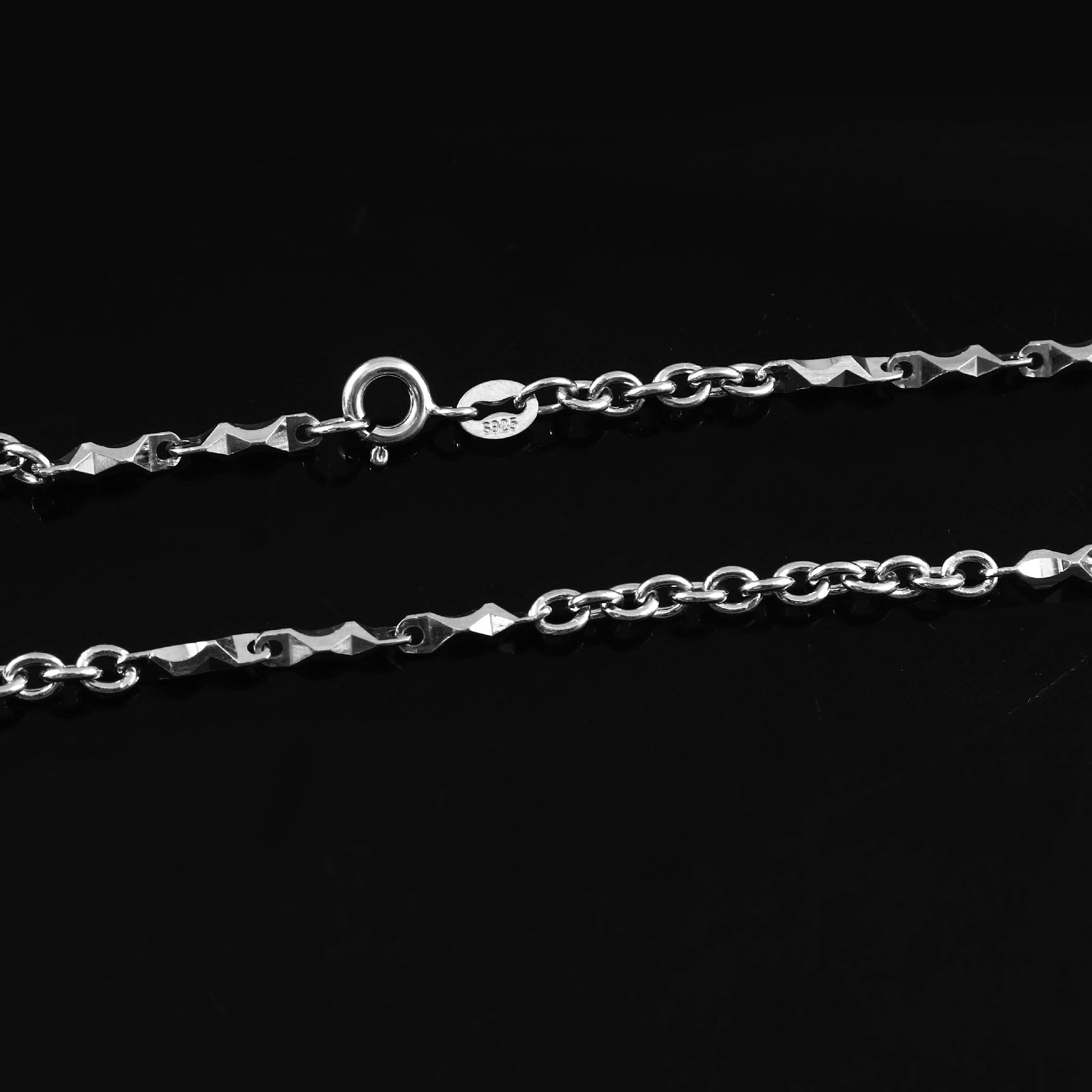 Enhanced with rhodium plating that imparts a refined luminosity, this silver chain achieves a harmonious balance between movement and substance.