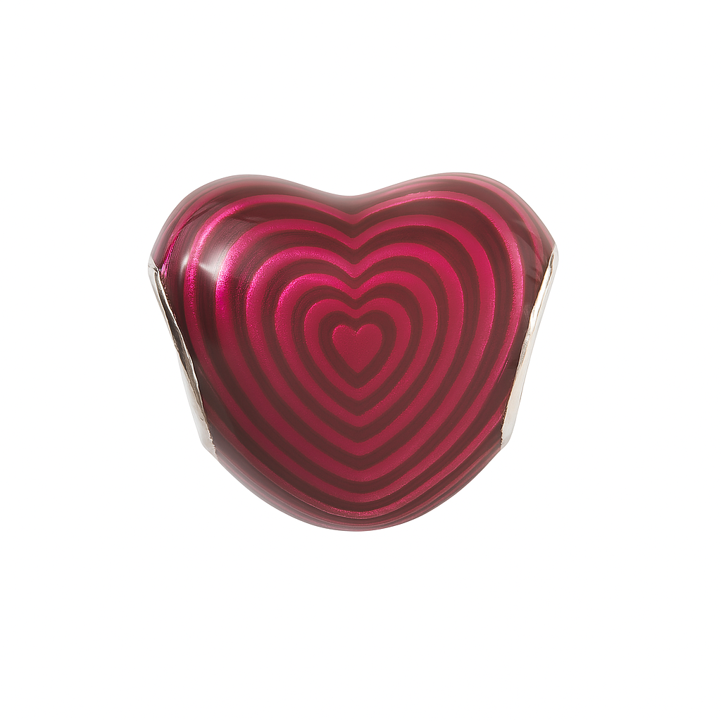Crafted in 925 sterling silver, the charm features a glowing red enamel finish with radiating heart lines and a polished silver “Mama” script across the front.