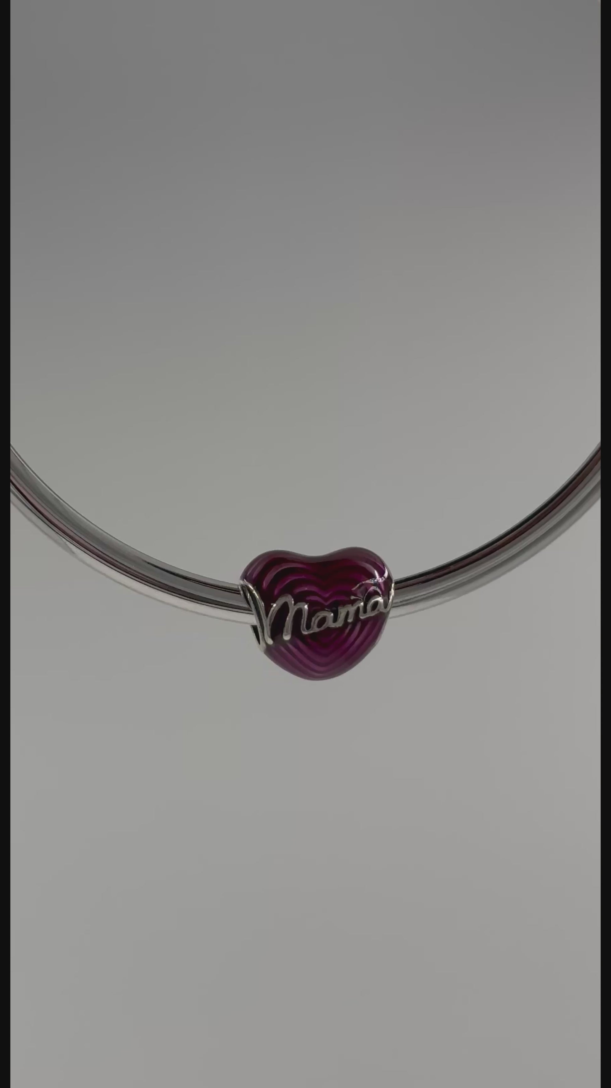 • Design: Heart-shaped bead with "Mama" script on one side and ripple hearts on the other