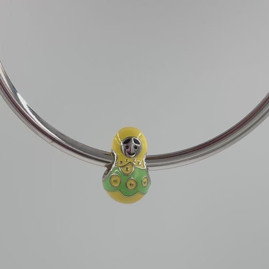 Matryoshka Doll Charm in Yellow & Green Enamel | 925 Silver