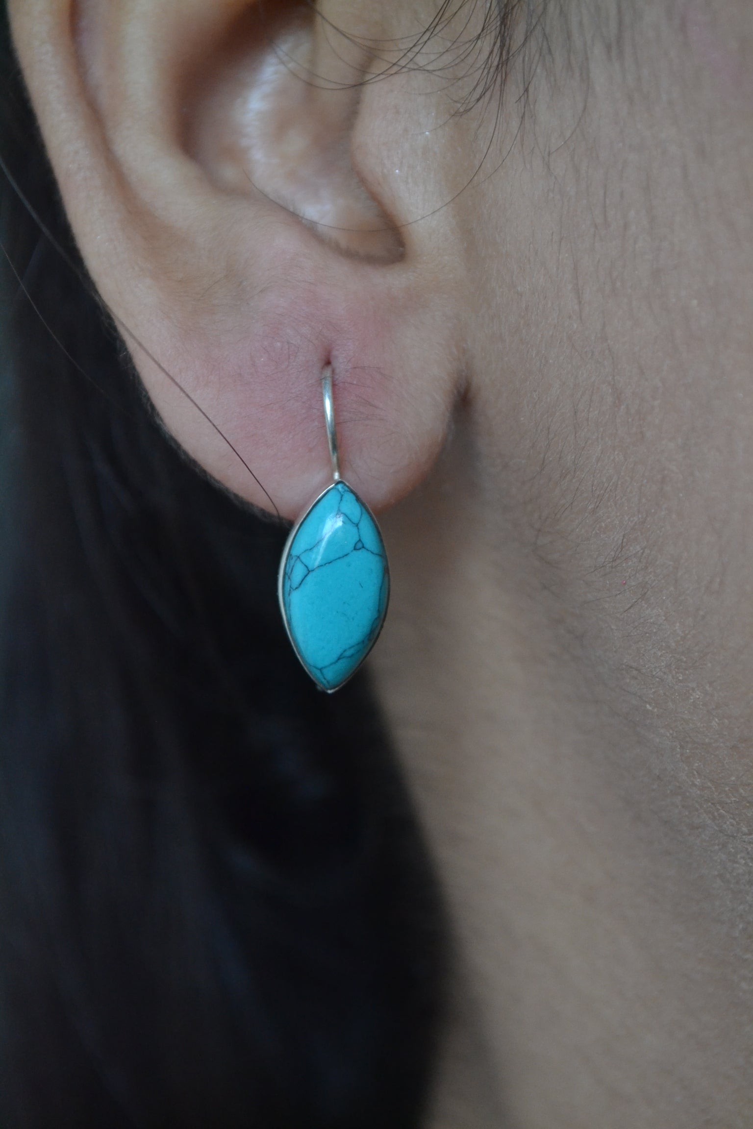 Meher Earrings – Turquoise Marquise 925 Silver Drop Earrings