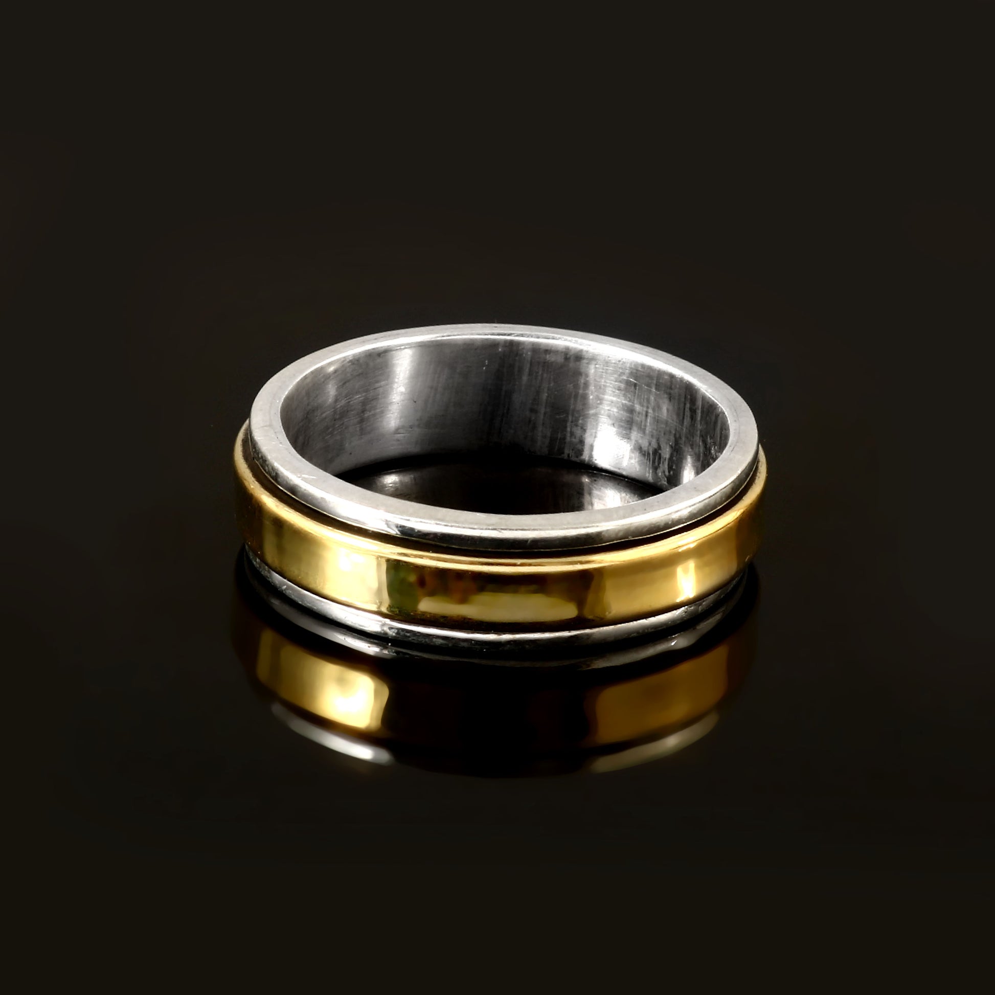 Command attention with this heavy dual-tone band ring crafted in 925 sterling silver and detailed with a striking polished gold center band. This ring offers substantial presence without compromising on elegance. The clean design and smooth finish make it ideal for both everyday wear and special occasions. Whether you're seeking a wedding band alternative or a bold fashion statement, this ring delivers style and substance in equal measure.