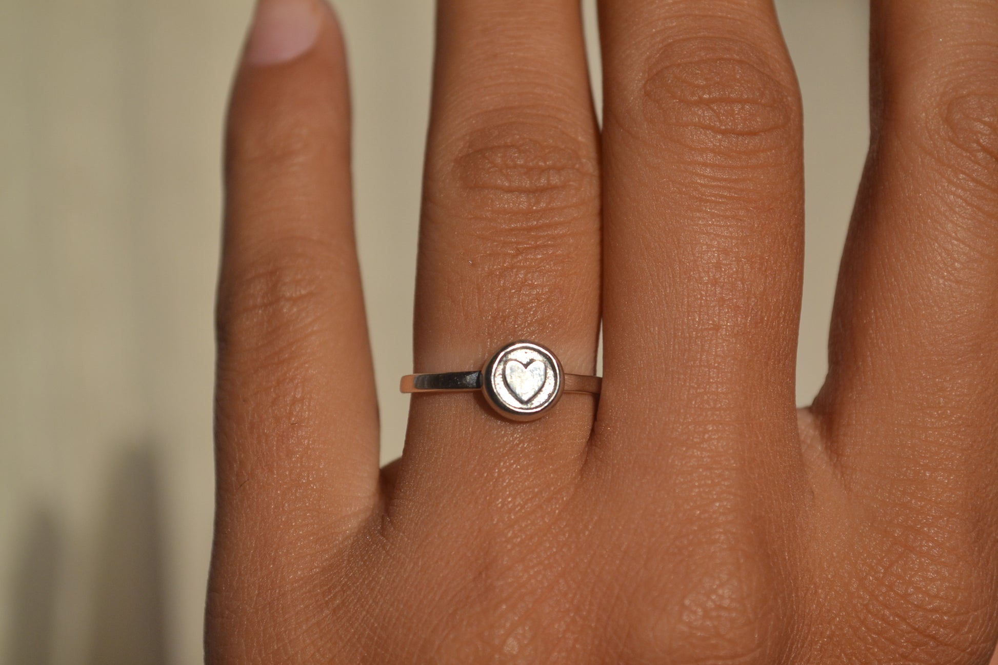 Celebrate love in its purest form with this minimalist heart disc ring, crafted from solid 925 sterling silver. The polished round face features a raised heart at its center, making it a sweet token for everyday wear or a thoughtful gift. Lightweight and comfortable, it’s perfect for stacking or wearing solo. Whether you wear it as a promise ring or a subtle statement of affection, its timeless design ensures it never goes out of style.