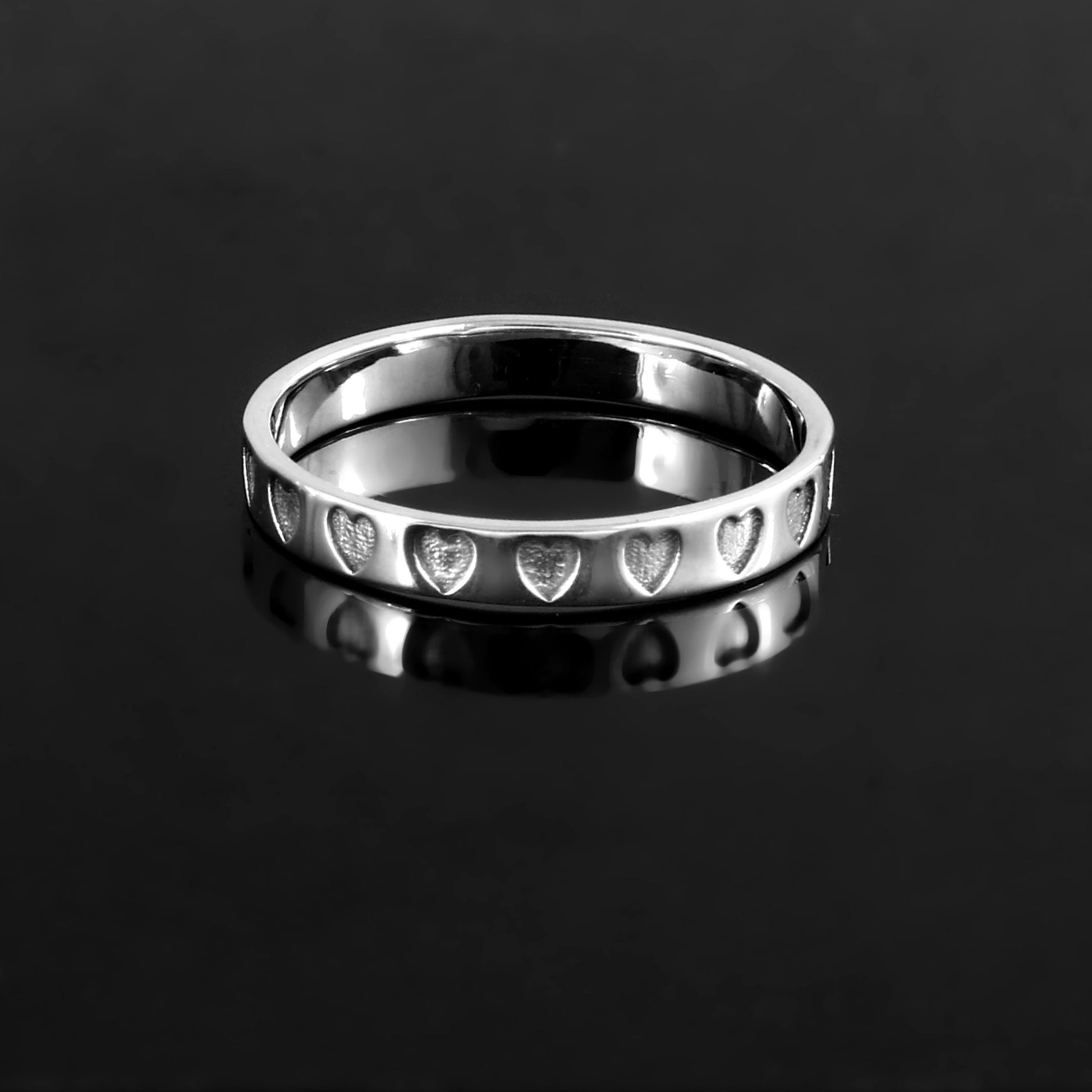 This 925 sterling silver ring features a sleek and polished band engraved with a series of tiny heart motifs, adding just the right touch of charm and sentiment. Its minimalist design makes it a versatile piece—wear it alone for a subtle statement or stack it with other rings for a trendy layered look. Lightweight and comfortable, it’s ideal as a promise ring, a friendship ring, or a daily go-to piece.