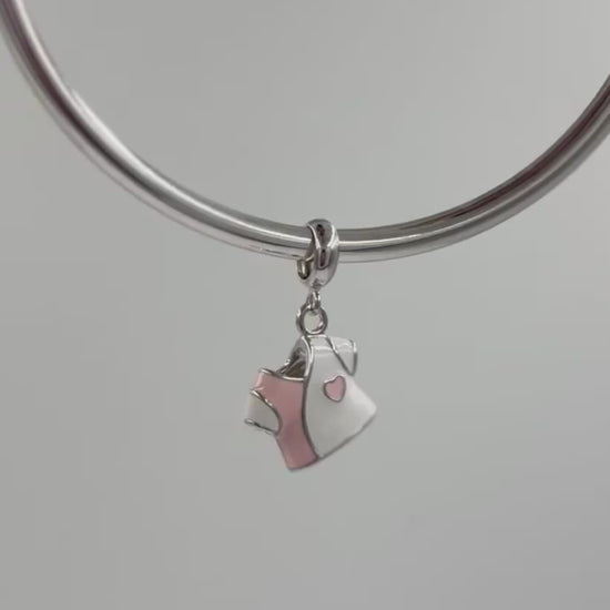 Pink & White Baby T-Shirt Charm in 925 Silver