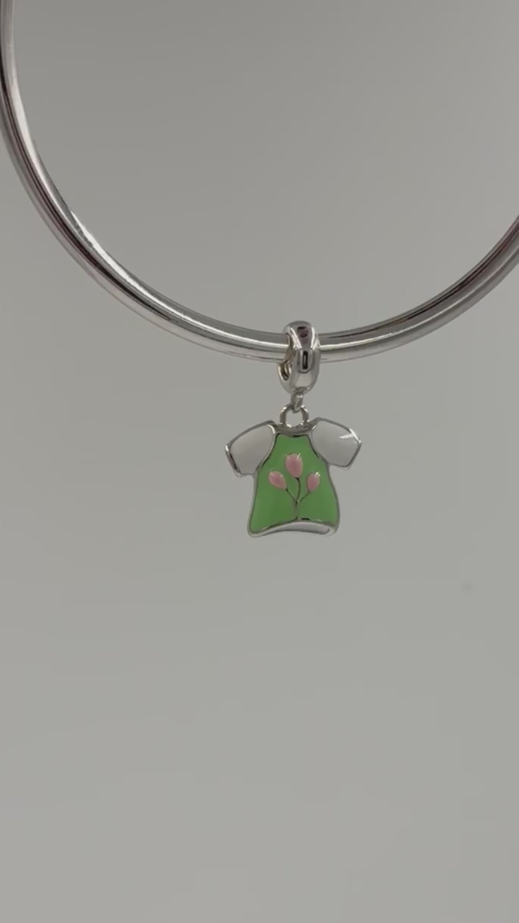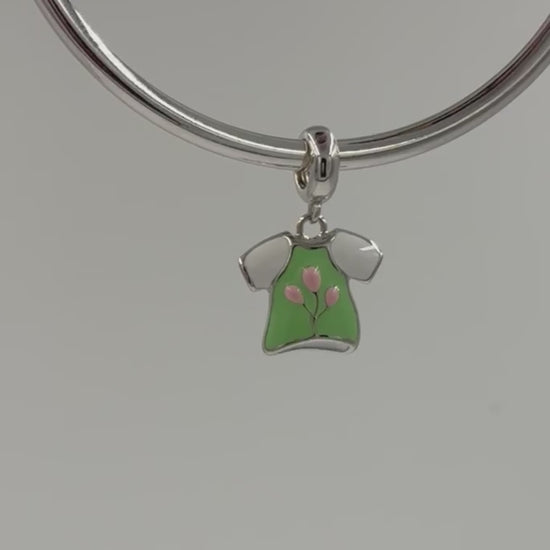 Whether you're expressing your playful side or gifting a token of style, this t-shirt charm is a fun addition to any bracelet or necklace.