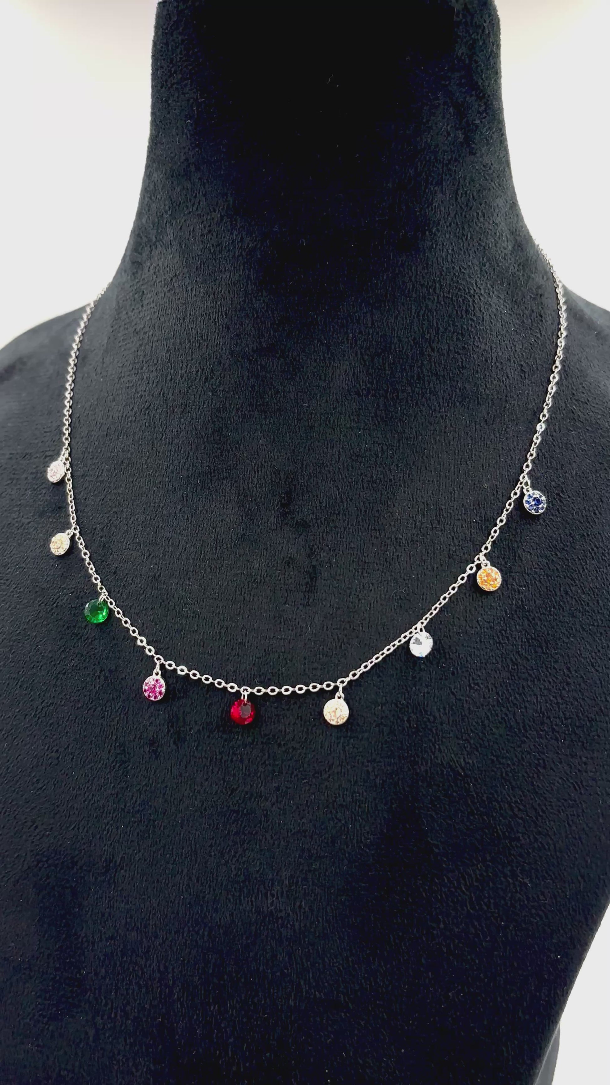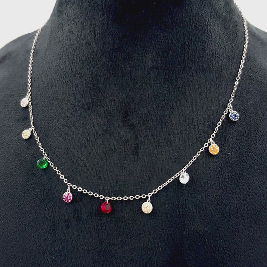 Rainbow Crystal Drop Necklace | Sterling-Silver Charm Choker with Multicolor Birthstone Cubic Zirconia