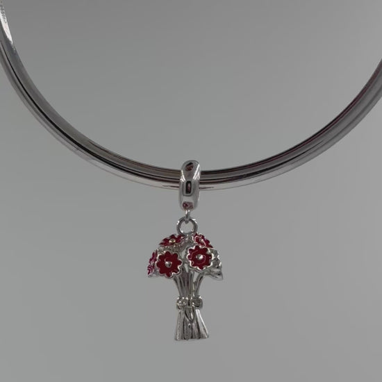 Celebrate love, beauty, and nature with our Red Flower Bouquet Charm crafted in fine 925 sterling silver.