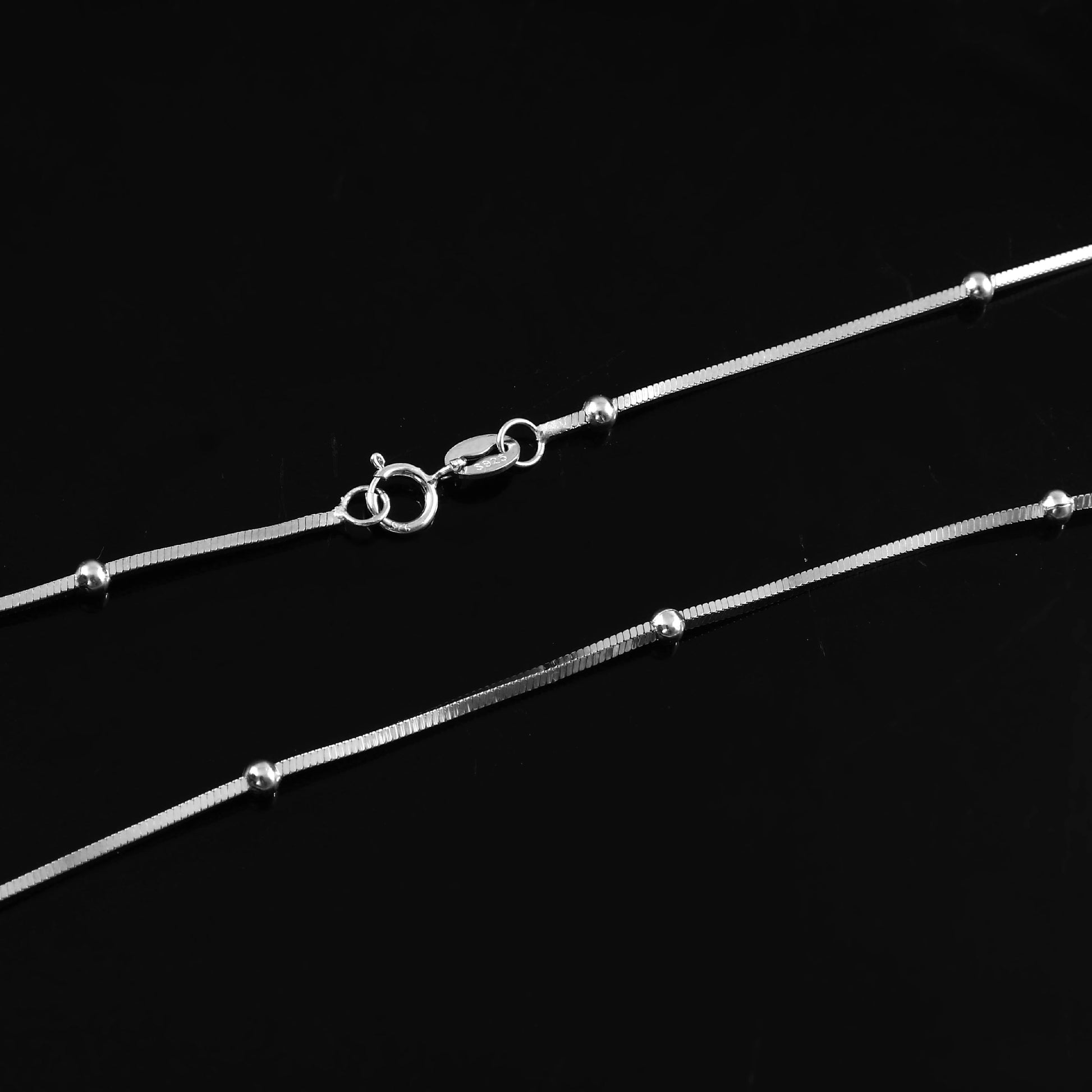 This refined beaded silver chain offers a contemporary interpretation of classical design principles—where proportion and rhythm converge in sophisticated equilibrium.