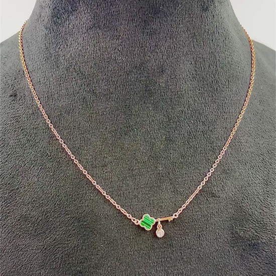 Rose-Gold Lucky Clover Key Necklace with Malachite Enamel & CZ Charm