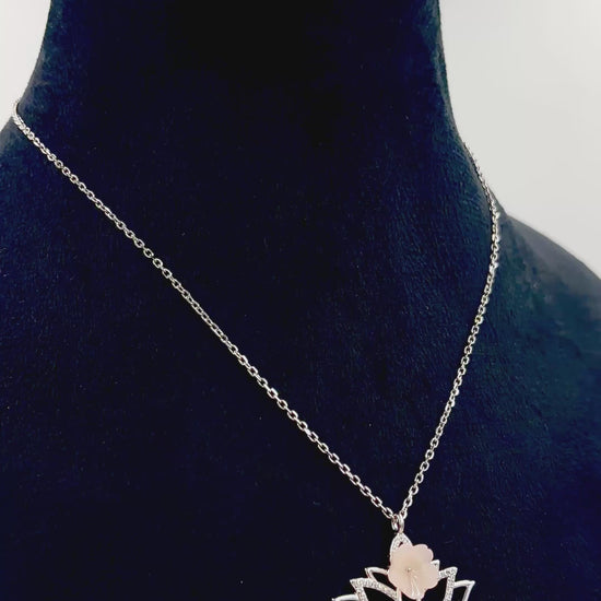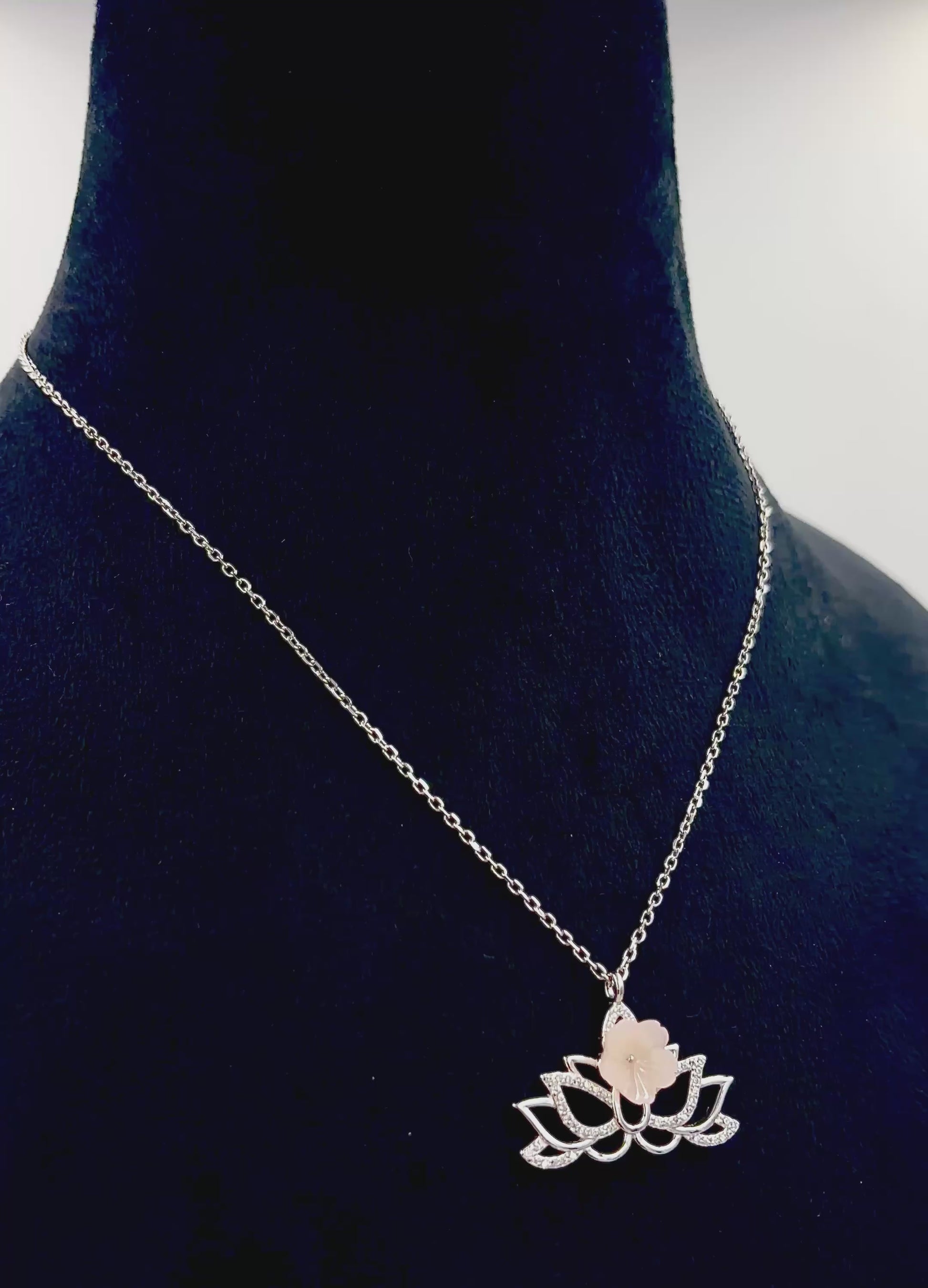 Rose Quartz Lotus Sterling Silver Necklace – CZ Pavé Yoga Pendant