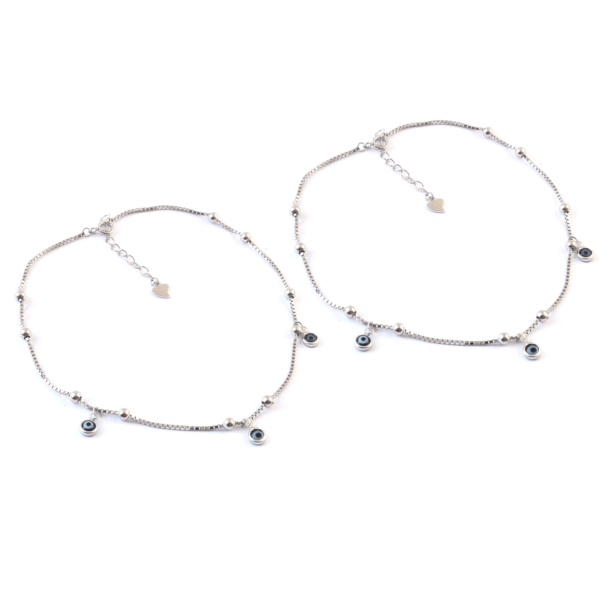 Keep bad vibes away in style with this Silver Evil Eye Anklet by Zirak Silver.