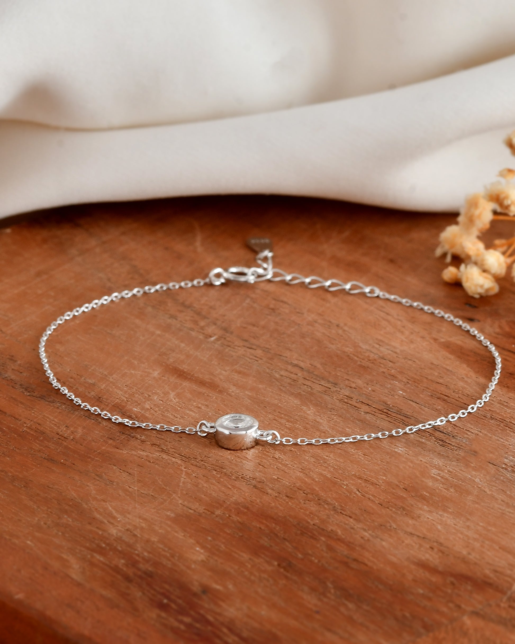 Solo Sparkle Sterling Silver Bezel-Set CZ Bracelet – Minimalist Single-Stone Dainty Chain