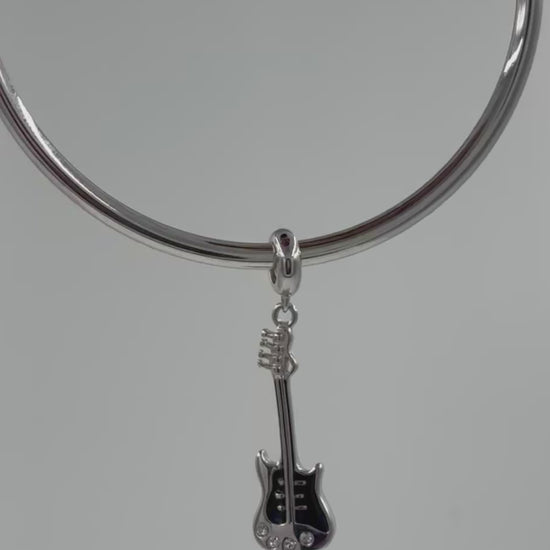 Sterling Silver Black Enamel Guitar Charm for Bracelets