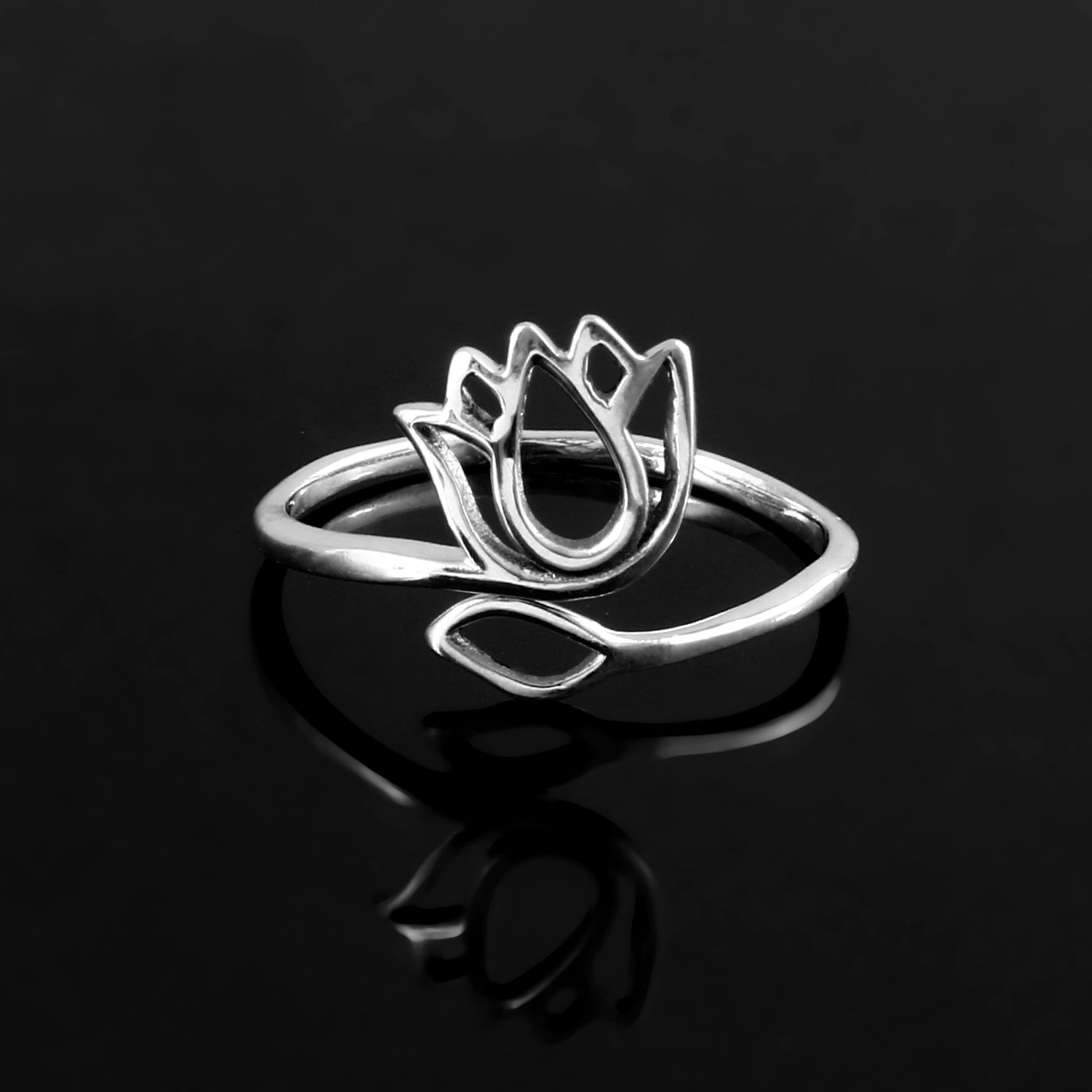 Channel serenity and strength with this beautifully handcrafted lotus ring made from 925 sterling silver. The open petal silhouette captures the essence of a blooming lotus, symbolizing growth, resilience, and beauty. Lightweight, this ring is perfect for daily wear or gifting. Ideal for those who appreciate minimal, symbolic jewelry with spiritual undertones. Add a touch of meaning and grace to your style with this floral favorite.