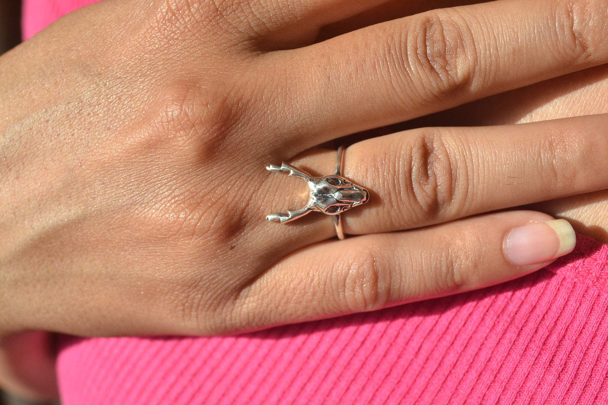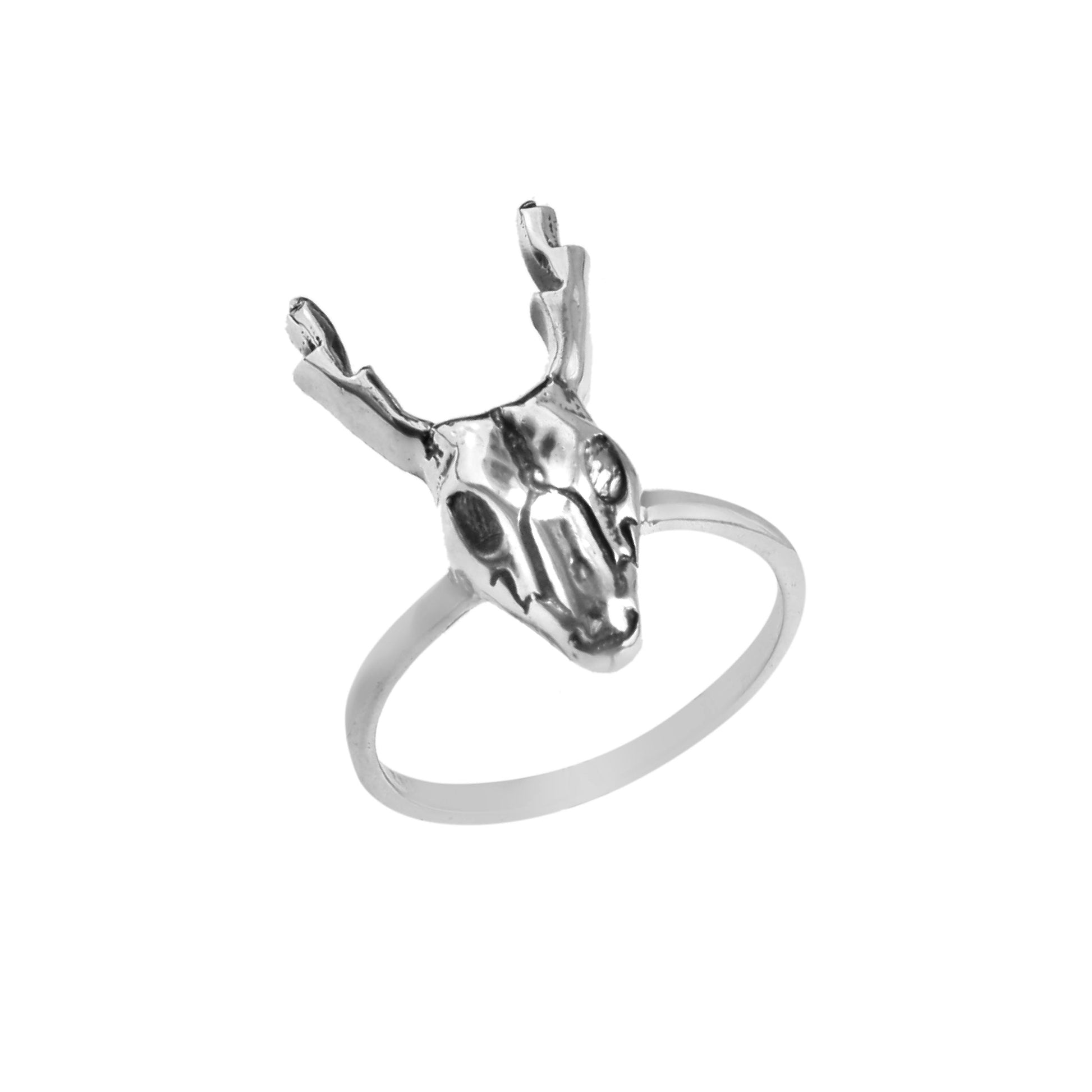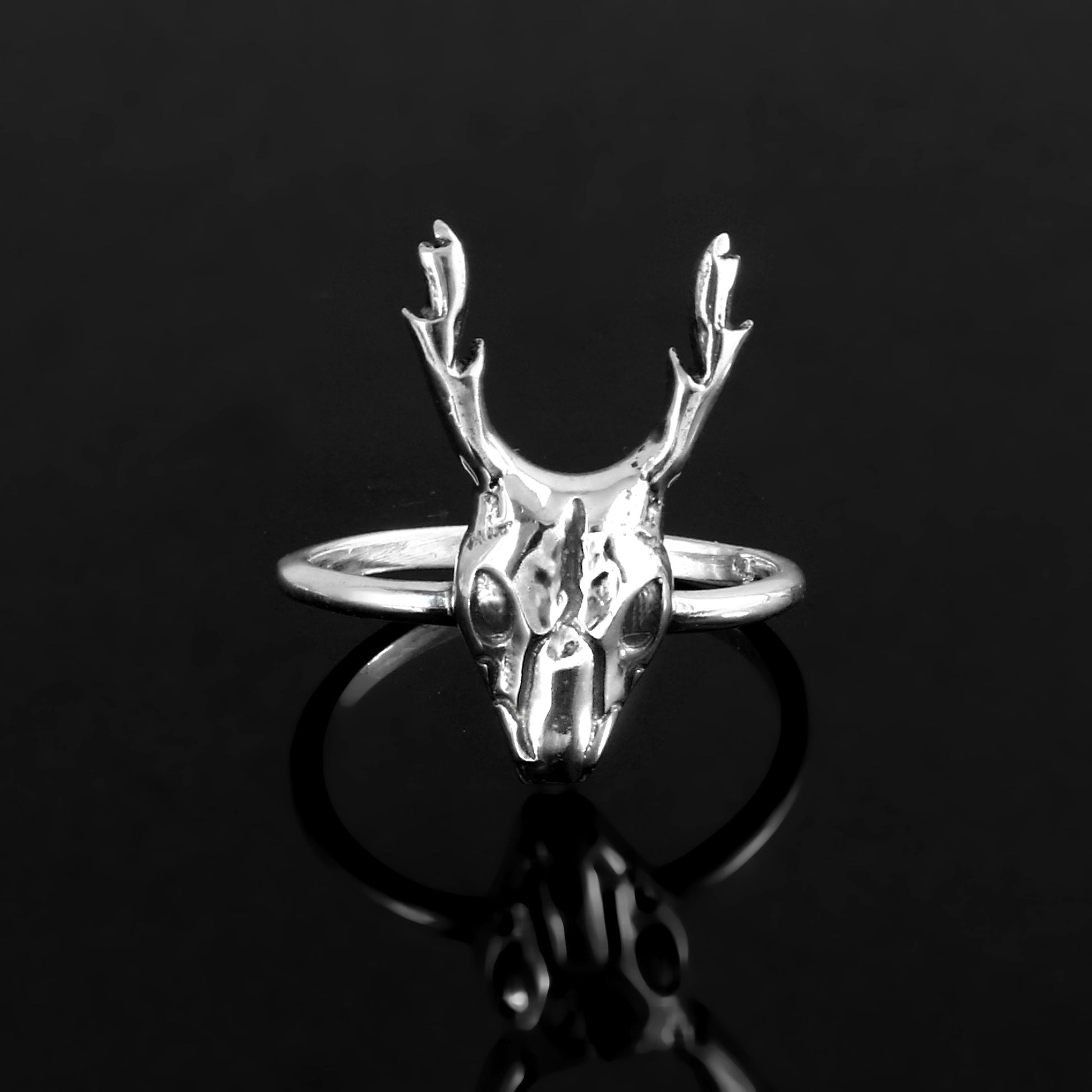 Channel the wild spirit with this striking sterling silver deer skull ring. Featuring a detailed antler design atop a sleek silver band, this ring combines gothic elegance with natural symbolism. Whether you're drawn to forest motifs, fantasy themes, or unique statement jewelry, this handcrafted piece delivers bold charm and craftsmanship. Made from 925 solid silver, it's ideal for both men and women who love edgy, symbolic accessories.