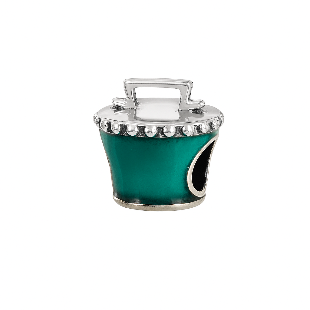 Brew up some magic for your bracelet with this sterling silver green cauldron charm.