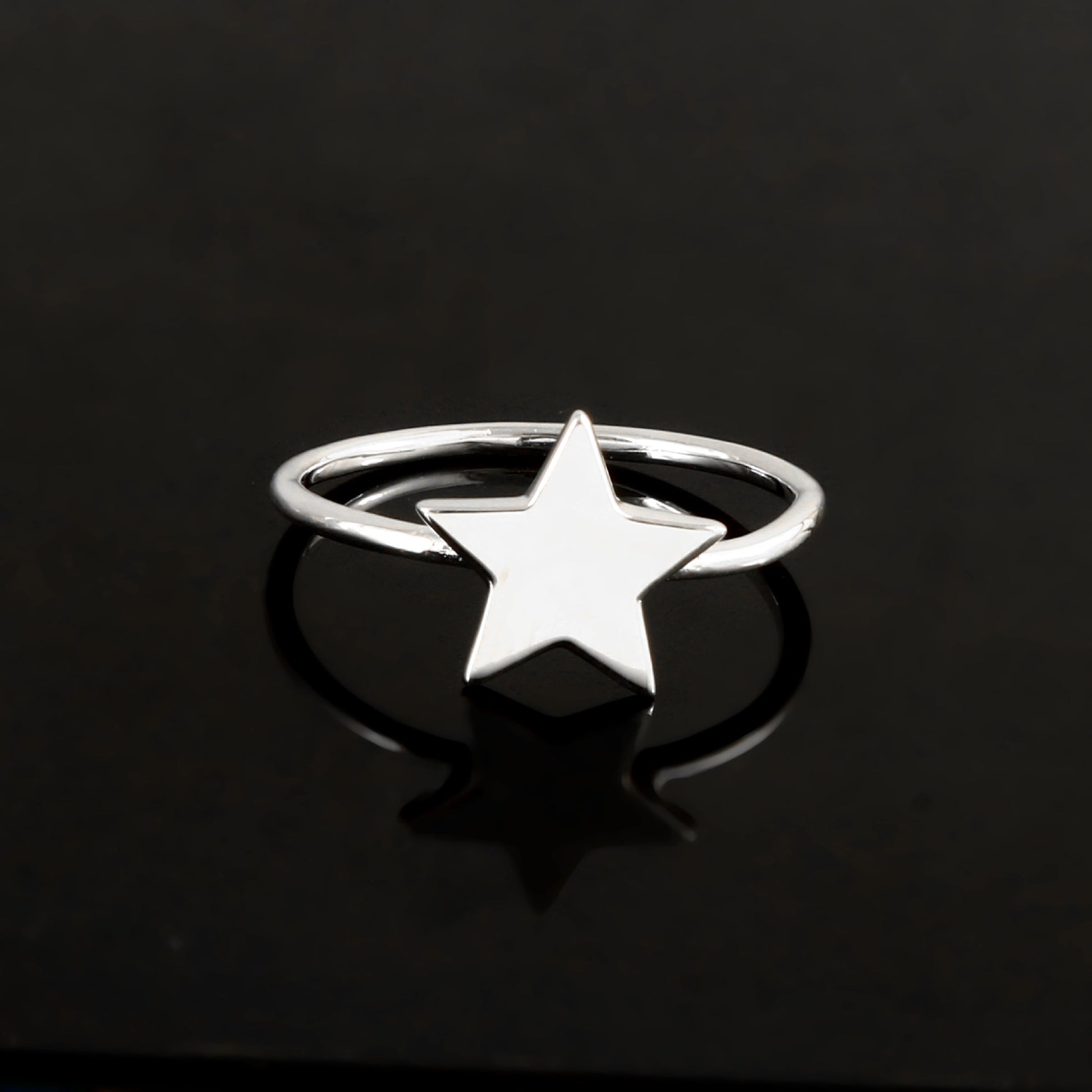 Shine bright with this dainty sterling silver ring featuring a bold five-point star centerpiece. Crafted from genuine 925 silver, this lightweight design adds a touch of celestial charm to your everyday look. Perfect for stacking or wearing solo, it’s a minimal yet striking piece that complements any outfit. A great gift for stargazers, dreamers, or anyone who loves symbolic jewelry with a modern twist.