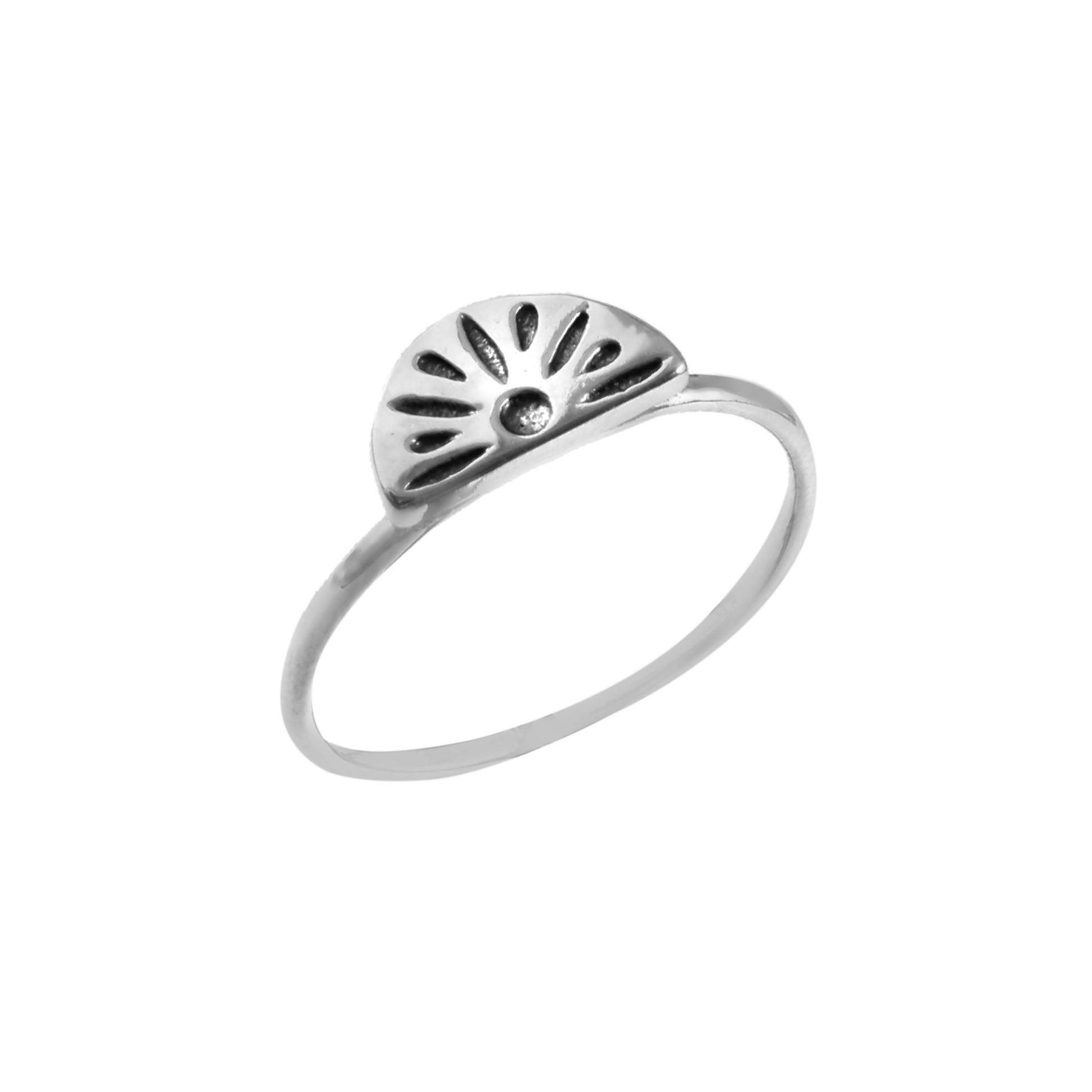 Capture the first light of dawn with our Sunburst Sterling Silver Ring. Crafted from 925 silver, this lightweight ring features a half-circle sun motif with radiant beams etched into the surface. Ideal for stacking or wearing solo, this minimal yet meaningful design symbolizes hope, new beginnings, and inner strength. A thoughtful gift for someone starting a new chapter or a stylish addition to your own jewelry collection.