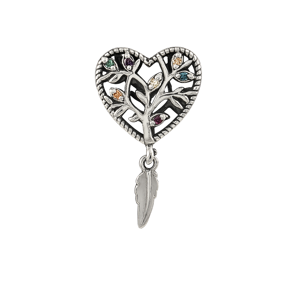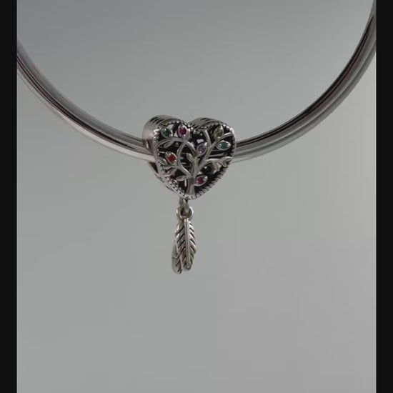 Sterling Silver Tree of Life Heart Charm with Feather Dangle