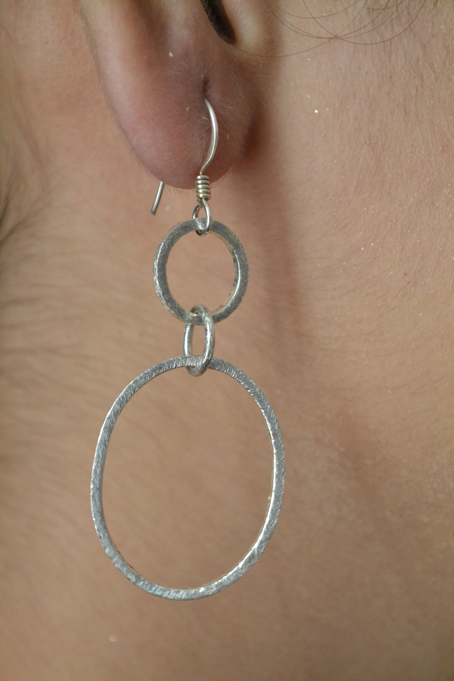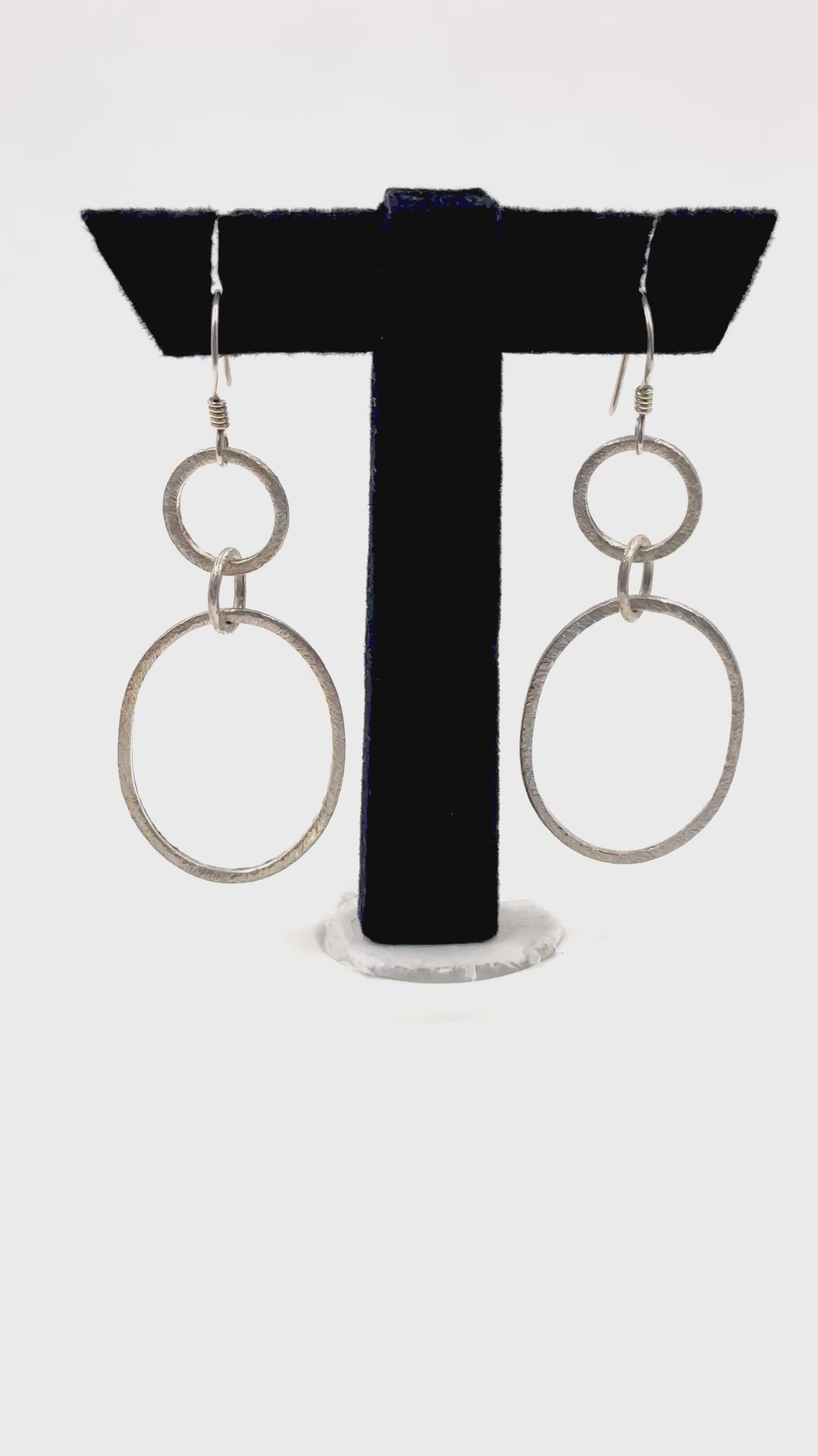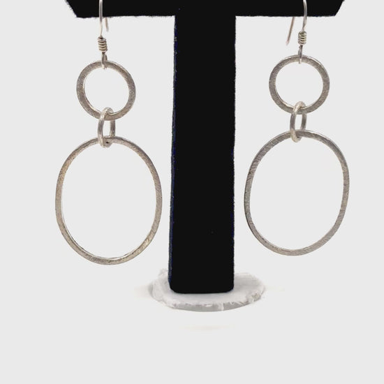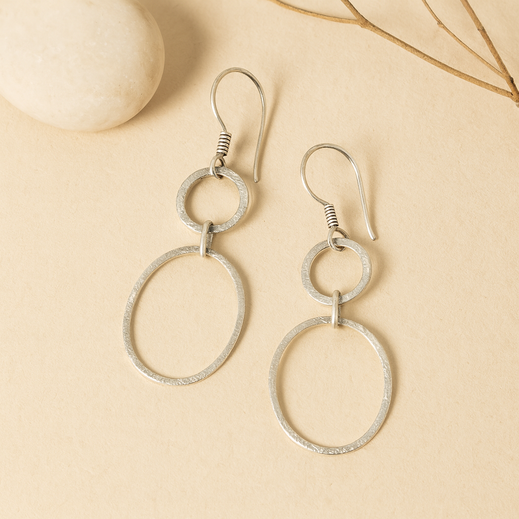 Svara Earrings – Textured 925 Silver Dual Hoop Dangle Earrings