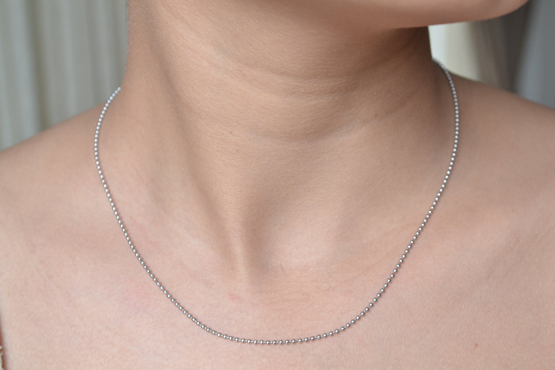 Each diminutive bead link is meticulously aligned in perfect succession, creating a continuous line of rhodium-enhanced brilliance.