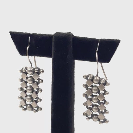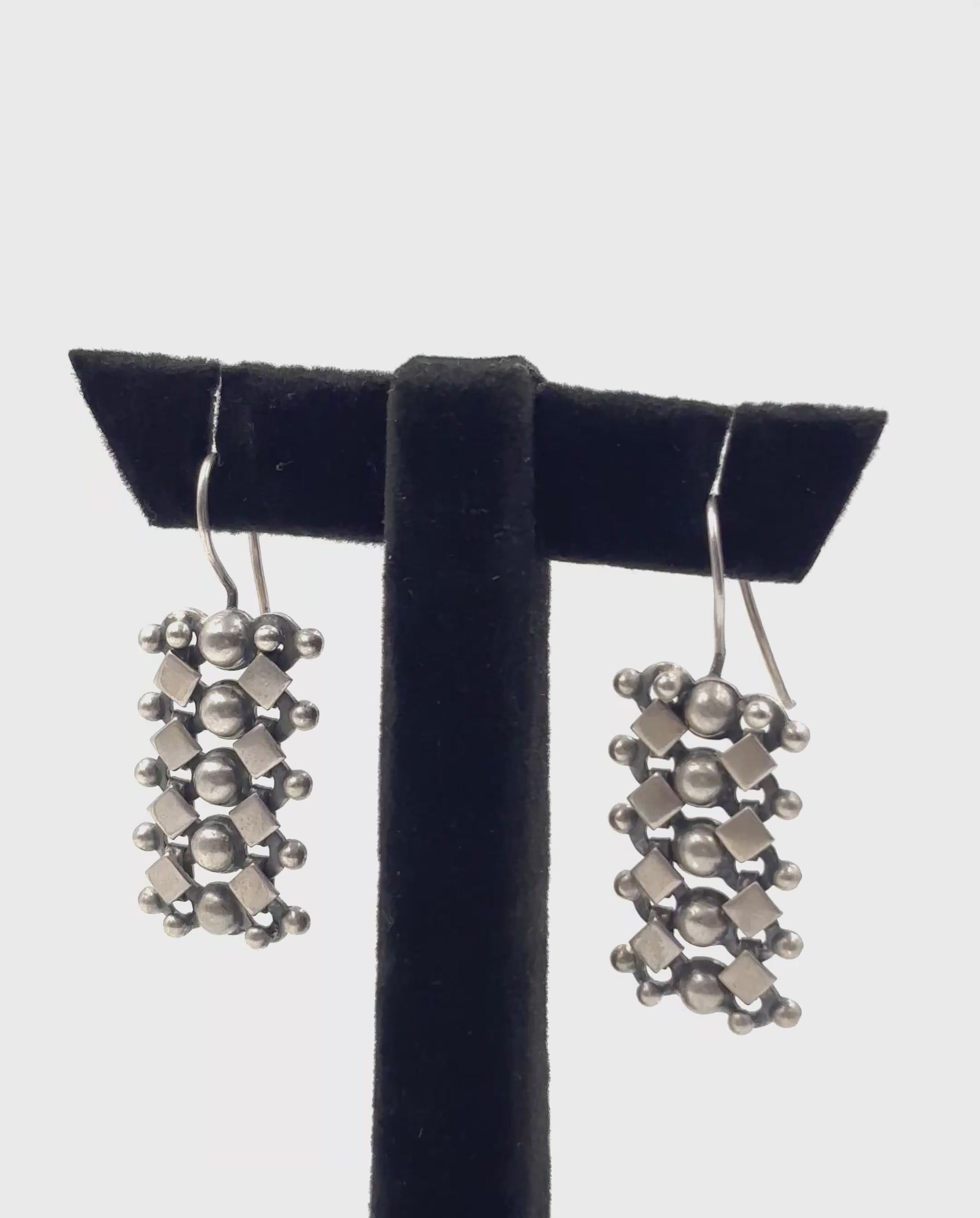 Each meticulously crafted 925 silver rectangle presents a sophisticated composition of raised dome motifs and precise linear carvings, enhanced by strategic oxidation that accentuates the dimensional textures.