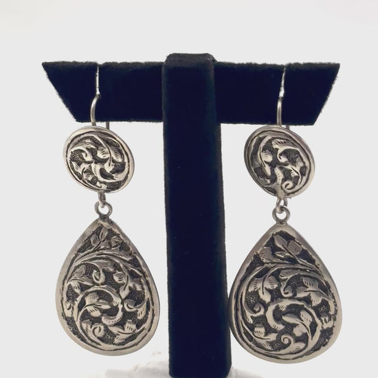 Vriti Earrings – Oxidised 925 Silver Engraved Teardrop Dangle Earrings
